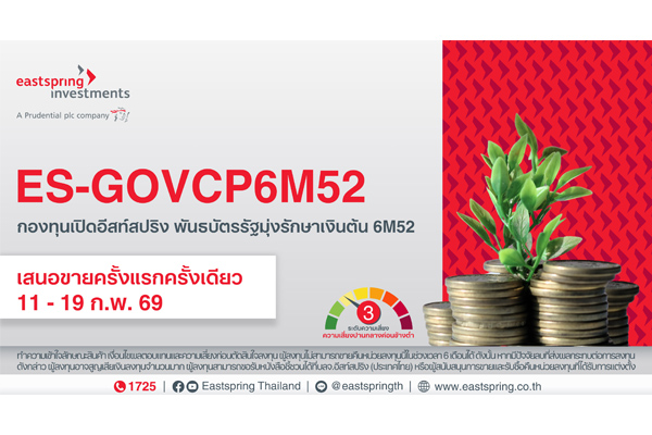 บลจ.อีสท์สปริง เสิร์ฟกองเทอมฟันด์พันธบัตรรัฐมุ่งรักษาเงินต้น 6 เดือน ยิลด์ 0.90% ต่อปี เปิดขาย 11-19 ก.พ. 69 นี้ บริษัทหลักทรัพย์จัดการกองทุน อีสท์สปริง (ประเ