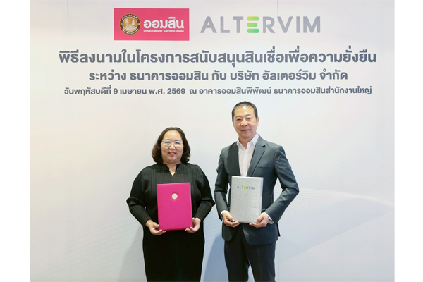 ออมสินอัดฉีดสินเชื่อ 1,500 ล้าน หนุน “อัลเตอร์วิม” มุ่งเป้า Net Zero 2050