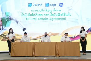 ยักษ์ลงทุน – นายปฏิวัติ ทิวะศะศิธร์ รองกรรมการผู้จัดการใหญ่ กลุ่มธุรกิจโรงกลั่นและค้าน้ำมัน และประธานเจ้าหน้าที่ปฏิบัติการ-โรงกลั่น บมจ.บางจาก คอร์ปอเรชั่น (BCP) นายบัณฑิต หรรษาไพบูลย์ ผู้ช่วยกรรมการผู้จัดการใหญ่ บริษัท บางจาก คอร์ปอเรชั่น จำกัด (มหาชน) ในฐานะกรรมการบริษัท BCP Trading จำกัด หรือ BCPT และ นายธนวัฒน์ ลินจงสุบงกช กรรมการผู้จัดการ บริษัท ธนโชค ออยล์ ไลท์ จำกัด ร่วมลงนามในสัญญาซื้อขายน้ำมันไบโอดีเซลจากน้ำมันพืชใช้แล้ว (Used Cooking Oil Methyl Ester หรือUCOME) โดยบางจากฯ เป็นผู้มีสิทธิ์รับซื้อรายเดียวในประเทศไทย ด้วยปริมาณซื้อขายกว่า 5 ล้านลิตรต่อเดือน ดำเนินงานผ่านบริษัท BCPT กิจการค้าน้ำมันในกลุ่มบางจากฯ ซึ่งปัจจุบันเป็นผู้ค้าน้ำมันอิสระอันดับหนึ่งในตลาดสิงคโปร์ ในการวางแผนจัดจำหน่ายน้ำมันไบโอดีเซลจากน้ำมันพืชใช้แล้วสำหรับใช้ทั้งในและต่างประเทศ