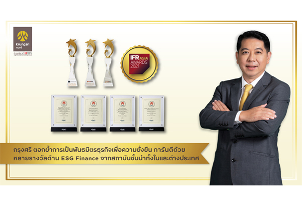ได้แก่ The Asset Award และ IFR ASIA Awards รวมถึงรางวัลตราสารหนี้ยอดเยี่ยมแห่งปี 2565 (ThaiBMA Best Bond Awards 2021) ยืนยันพร้อมเดินหน้านำเสนอนวัตกรรมทางการเงินเพื่อส่งเสริมการดำเนินธุรกิจ ที่ให้ความสำคัญกับหลักการด้านสิ่งแวดล้อม (Environment) สังคม (Social) และธรรมาภิบาล (Governance) หรือ ESG ในฐานะพันธมิตรทางธุรกิจที่ได้รับความไว้วางใจจากลูกค้าเพื่อก้าวสู่ความยั่งยืนไปด้วยกันในอนาคต