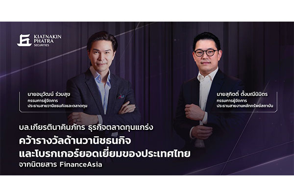 บริษัทหลักทรัพย์ เกียรตินาคินภัทร จำกัด (มหาชน) คว้า 2 รางวัลสำคัญในธุรกิจตลาดทุนไทย ได้แก่ รางวัลยอดเยี่ยมด้านวาณิชธนกิจในประเทศไทย (Best Investment Bank in Thailand) เป็นปีที่ 7 และรางวัลโบรกเกอร์ยอดเยี่ยมในประเทศไทย (Best Broker in Thailand) ต่อเนื่องปีที่ 7 จากงาน FinanceAsia’s Country Awards 2022 ที่จัดขึ้นโดย FinanceAsia นิตยสารการเงินชั้นนำแห่งเอเชีย โดยมี นายอนุวัฒน์ ร่วมสุข กรรมการผู้จัดการ ประธานสายวานิชธนกิจและตลาดทุน และ นายสุกิตติ์ ตั้งมณีนิมิตร กรรมการผู้จัดการ ประธานสายงานหลักทรัพย์สถาบัน เป็นผู้แทนกลุ่มธุรกิจฯ ประกาศความสำเร็จ ทั้งนี้ การให้รางวัลพิจารณาจากผลการดำเนินงานที่โดดเด่น ความเชี่ยวชาญในการดำเนินธุรกรรม ตลอดจนการมีส่วนส่งเสริมพัฒนาการของอุตสาหกรรมการเงินของประเทศไทย ท่ามกลางความท้าทายจากปัจจัยต่างๆ ที่ส่งผลกระทบต่อตลาดทุน โดยการประกาศผลรางวัลมีขึ้นเมื่อเร็วๆ นี้