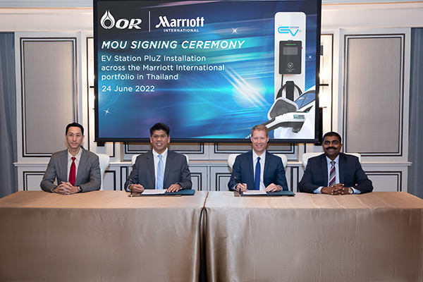โออาร์ จับมือ แมริออท อินเตอร์เนชั่นแนล ขยายเครือข่ายสถานีชาร์จไฟฟ้า EV Station PluZ อำนวยความสะดวกผู้ใช้รถไฟฟ้า ในโรงแรมและรีสอร์ท 30 แห่งทั่วประเทศไทย