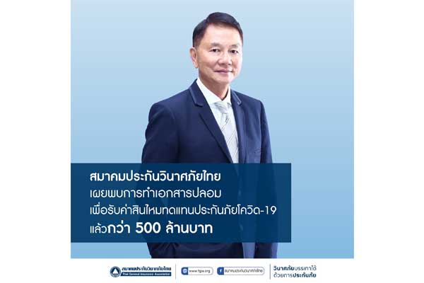 สมาคมประกันวินาศภัยไทย เผยพบการทำเอกสารปลอมเพื่อรับค่าสินไหมทดแทนประกันภัยโควิด-19 แล้วกว่า 500 ล้านบาทนายอานนท์ วังวสุ นายกสมาคมประกันวินาศภัยไทย เปิดเผยว่า สมาคมฯ ได้รับแจ้งจากบริษัทสมาชิกของสมาคมฯ หลายบริษัท ว่าพบผู้ที่ทำประกันภัยโควิด-19 ใช้เอกสารปลอมในการยื่นขอรับเงินค่าสินไหมทดแทนรวมเป็นจำนวนแล้วกว่า 500 ล้านบาท