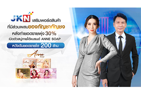 ‘บมจ. เจเคเอ็น โกลบอล กรุ๊ป หรือ JKN’ ตอกย้ำความสำเร็จผลิตภัณฑ์ที่มีส่วนสกัดจากกัญชากัญชง หลังทำยอดขายเพิ่มถึง 30% เดินหน้าเสริมพอร์ตโฟลิโอเปิดตัวผลิตภัณฑ์สบู่ภายใต้แบรนด์ Anne Soap สร้างกระแสความนิยมให้แก่ลูกค้าต่อเนื่อง หวังผลักดันเป้ายอดขายกลุ่มผลิตภัณฑ์ที่มีส่วนผสมกัญชงกัญชาโดยรวมปีนี้ 200 ล้านบาท