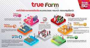 1. True Farm Drone และ True Farm Grow สำหรับกลุ่มธุรกิจพืช – โซลูชัน “ทรู ฟาร์ม โดรน” (True Farm Drone) ให้บริการโดรนสำหรับฉีดพ่นปุ๋ยหรือยา และ โซลูชัน “ทรู ฟาร์ม โกรว์” (True Farm Grow) อุปกรณ์ไอโอทีสำหรับการให้น้ำและเพาะปลูก สามารถช่วยดูแลพืชได้อย่างแม่นยำ รวมถึงช่วยลดค่าใช้จ่าย ประหยัดเวลาและแรงงานในการดูแล โดยสามารถเลือกใช้โซลูชันได้ตามความเหมาะสม ครอบคลุมทั้งพืชไร่ พืชสวน และผลไม้