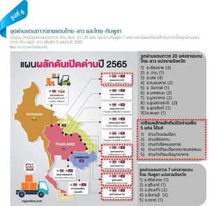 ในปี 2565 ไทย และ สปป.ลาว มีแผนที่จะผลักดันการเปิดจุดผ่านแดนถาวร เพิ่มอีก 5 แห่ง ปัจจุบัน ไทยมีจุดผ่านแดนถาวร ด้าน สปป. ลาว 20 แห่ง และมีแผนที่จะผลักดันการเปิดจุดผ่านแดนถาวร ด้าน สปป. ลาว เพิ่มอีก 5 แห่งในปี 2565