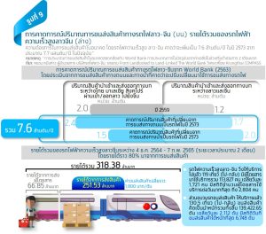 โดยเป็นการปรับขึ้นจาก 1) การผ่านแดนระหว่างไทยและจีน 3.6 แสนล้านบาท (+54%YoY) แบ่งเป็น มูลค่าส่งออก 1.9แสนล้านบาท (+60%YoY) และมูลค่านำเข้า 1.72 แสนล้านบาท (47+%YoY)