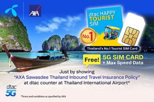 ความร่วมมือระหว่าง “ดีแทค” และแอกซ่าประกันภัยในครั้งนี้ ถือเป็นการมอบสิทธิประโยชน์พิเศษสำหรับลูกค้ากลุ่มนักท่องเที่ยวชาวต่างชาติ กรมธรรม์ประกันภัยการเดินทางเข้าในประเทศ “แอกซ่า สวัสดี ไทยแลนด์” มอบความคุ้มครองค่ารักษาพยาบาลจากอุบัติเหตุและการเจ็บป่วย รวมถึงโควิด-19 สูงถึง 750,000 บาท และคุ้มครองกรณีเสียชีวิต หรือทุพพลภาพถาวร เนื่องจากอุบัติเหตุ 1 ล้านบาท และจะให้ความคุ้มครองหลังจากผ่านด่านตรวจคนเข้าเมืองทันที เพื่อความสบายใจในการเดินทางตลอดเวลาที่อยู่ในประเทศไทย โดยไม่ต้องสำรองจ่ายล่วงหน้า กรณีเข้ารับการรักษาเป็นผู้ป่วยในโรงพยาบาลเครือข่ายแอกซ่าที่มีอยู่ทั่วประเทศ นอกจากนี้ ลูกค้าแอกซ่ายังจะได้รับดีแทค แฮปปี้ ทัวริสต์ซิม แบบเติมเงินสำหรับนักท่องเที่ยว พร้อมอินเทอร์เน็ตฟรี 8 GB นาน 24 ชั่วโมง