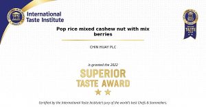 รางวัล “Superior Taste Award 2022” ถือเป็นสัญลักษณ์แห่งความเป็นเลิศด้านรสชาติ และเป็นที่ยอมรับในระดับสากลทั่วโลก CH ในฐานะผู้ผลิตและจำหน่ายผลไม้อบแห้ง ปลากระป๋อง และขนมขบเคี้ยวเพื่อสุขภาพ รวมถึงผู้นำเทรนด์ Innovative Healthy Food จึงไม่หยุดที่จะทำการวิจัยและพัฒนาผลิตภัณฑ์เพื่อสุขภาพที่หลากหลายเพื่อตอบโจทย์ไลฟ์สไตล์กลุ่มผู้บริโภคอย่างต่อเนื่อง”