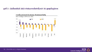 ภาคการท่องเที่ยวจะฟื้นตัวเร็วขึ้นตามการกลับมาของนักท่องเที่ยวจีน ซึ่งจะช่วยสนับสนุนการจ้างงานและการกระจายรายได้ของลูกจ้างในภาคบริการและผู้ประกอบอาชีพอิสระที่มีจำนวนมาก รวมทั้งเป็นแรงส่งต่อเนื่องไปยังการบริโภคภาคเอกชน ขณะที่การส่งออกสินค้ามีแนวโน้มชะลอลงในปีนี้ แต่จะฟื้นตัวในปี 67 ตามแนวโน้มเศรษฐกิจโลก โดยเศรษฐกิจโลกมีความเสี่ยงด้านต่ำลดลง ตามแนวโน้มเศรษฐกิจของประเทศเศรษฐกิจหลักรวมถึงจีนที่ปรับดีขึ้น