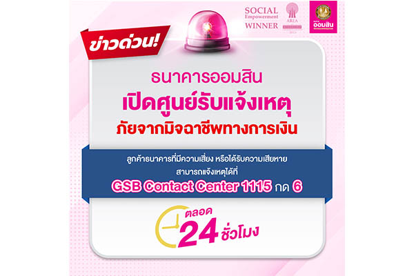 นายวิทัย รัตนากร ผู้อำนวยการธนาคารออมสิน เปิดเผยว่า ด้วยปัจจุบันมีลูกค้าและประชาชนจำนวนมากที่ประสบภัยถูกมิจฉาชีพล่อลวงด้วยวิธีการต่าง ๆ เป็นเหตุให้ต้องสูญเสียทรัพย์สินโดยรู้เท่าไม่ถึงการณ์ ดังนั้น เพื่อเป็นการดูแลลูกค้าและอำนวยความสะดวกแก่ผู้ที่ประสบเหตุ ธนาคารออมสินจึงเปิดศูนย์รับแจ้งเหตุภัยมิจฉาชีพทางการเงิน ทาง GSB Contact Center โทร. 1115 กด 6 โดยลูกค้าธนาคารออมสินที่ประสบเหตุ พบธุรกรรมที่ผิดปกติ หรือสงสัยว่าตนเองมีความเสี่ยงจากการถูกล่อลวงและอาจสูญเสียเงินจากบัญชีธนาคารออมสิน สามารถติดต่อแจ้งเหตุที่ศูนย์ฯ ดังกล่าวได้ตลอด 24 ชั่วโมง