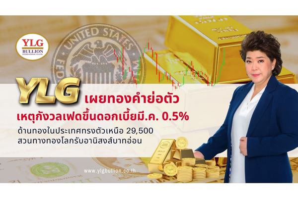 วายแอลจี เผยทองคำย่อตัวหลังนักลงทุนกังวลผลประชุมเฟดเดือน มี.ค. อัตรา ดอกเบี้ย นโยบายอาจปรับขึ้น 0.5% มากกว่าที่เคยคาด หลังเงินเฟ้อพุ่งไม่แผ่ว ส่งผลทองแกว่งตัวลงระยะสั้น