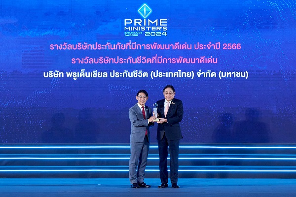 บริษัท พรูเด็นเชียล ประกันชีวิต (ประเทศไทย) จำกัด (มหาชน) นำโดยนายบัณฑิต เจียมอนุกูลกิจ ประธานเจ้าหน้าที่บริหาร เข้ารับมอบรางวัล “บริษัทประกันชีวิตที่มีการพัฒนาดีเด่นประจำปี 2566” ในพิธีมอบรางวัลประกันภัยดีเด่นครบวงจร ประจำปี 2567 (Prime Minister’s Insurance Awards 2024) ภายใต้แนวคิด NEXT GEN SUSTAINABLE INSURANCE : นวัตกรรมประกันภัยที่ยั่งยืนสู่โลกแห่งอนาคต