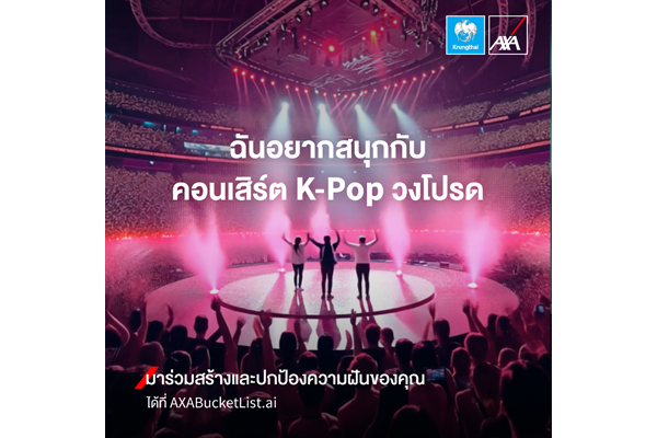 บมจ.กรุงไทย-แอกซ่า ประกันชีวิต ผู้นำธุรกิจประกันชีวิตและสุ ขภาพ เปิดตัวแคมเปญใหม่ ซึ่งเป็นแคมเปญที่จัดขึ้นร่วมกั นในประเทศไทยและประเทศฟิลิปปิ นส์ โดยแคมเปญดังกล่าวจัดขึ้นภายใต้ ธีม “มาร่วมสร้างและปกป้องความฝั นของคุณ” ซึ่งเป็นการนำนวั ตกรรมเทคโนโลยี AI มาร่วมสร้างความฝันของตนเอง ผ่าน AXA Bucket List.ai
