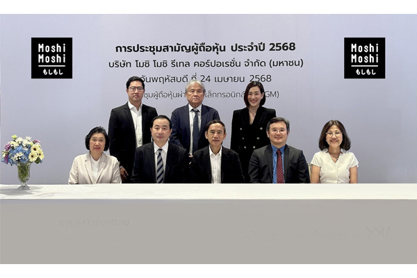 ดร.วรภัทร โตธนะเกษม ประธานกรรมการ นายสง่า บุญสงเคราะห์ ประธานเจ้าหน้าที่บริหาร พร้อมด้วยคณะกรรมการ บริษัท โมชิ โมชิ รีเทล คอร์ปอเรชั่น จำกัด (มหาชน) หรือ MOSHI ร่วมประชุมสามัญผู้ถือหุ้นประจำปี 2568 ในรูปแบบผ่านสื่ออิเล็กทรอนิกส์ (E–AGM)