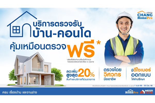 โฮมโปร แตกไลน์บริการ เสริมแกร่งแบรนด์ “ผู้นำเรื่องบ้านครบวงจร” ดันบริการ “Home Inspection” เจาะตลาดคนซื้อบ้านใหม่ ตรวจบ้านมืออาชีพ พร้อมออกแบบบ้านในฝันฟรี!
