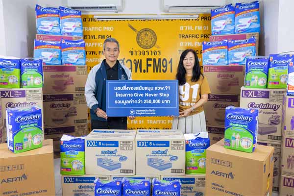 กรุงเทพประกันภัย ร่วมส่งต่อพลังแห่งการให้ มอบอุปกรณ์สิ่งของจำเป็นกว่า 250,000 บาท ในโครงการ GIVE NEVER STOP ผ่าน สวพ.FM91