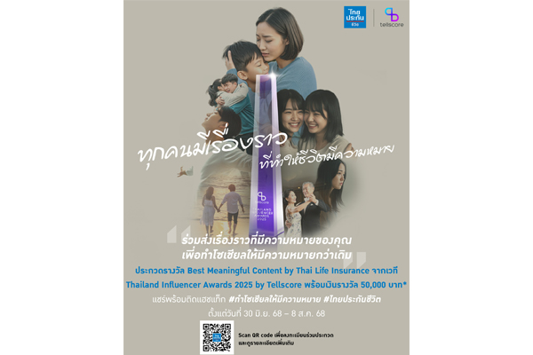 เพื่อชิงรางวัล Best Meaningful Content by Thai Life Insurance ในงาน Thailand Influencer Awards 2025 by Tellscore พร้อมเงินรางวัล 50,000 บาท จำนวน 5 รางวัล โดยผู้สนใจสามารถส่งวิดีโอเรื่องราวชีวิตที่มีความหมายได้ตั้งแต่วันนี้จนถึงวันที่ 8 สิงหาคม 2568