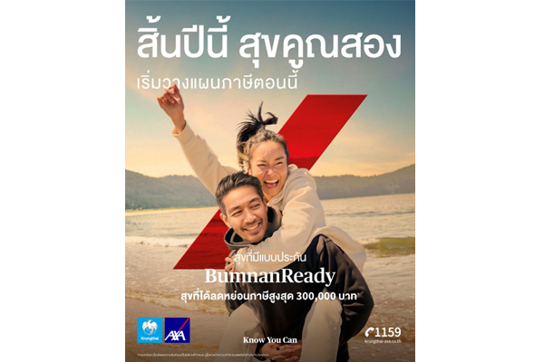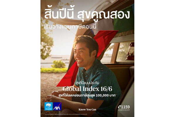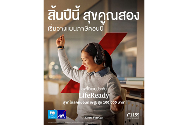 บมจ.กรุงไทย-แอกซ่า ประกันชีวิต ผู้นำธุรกิจประกันชีวิตและสุขภาพ เปิดตัวแคมเปญใหม่ รับเทศกาลภาษีปลายปีนี้ กับแคมเปญ “สิ้นปีนี้ สุขคูณสอง เริ่มวางแผนภาษี” สุขที่ได้มีประกัน และสุขที่ได้เงินลดหย่อนภาษี