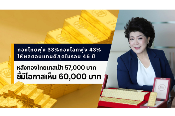 YLG เผยจากต้นปีทองไทยพุ่ง 33%ทองโลกพุ่ง 43%ให้ผลตอบแทนดีสุดในรอบ46ปี หลังทองไทยเทสเป้า57,000บาท ชี้มีโอกาสเห็น60,000บาทหากค่าเงินยังอ่อน