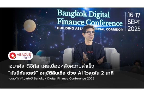 อบาคัส ดิจิทัล เผยเบื้องหลัง ความสำเร็จของ ‘มันนี่ทันเดอร์’ กับ การอนุมัติ ด้วย AI ไวสุดใน 2 นาที บนเวทีสำคัญแห่งปี Bangkok Digital Finance Conference 2025