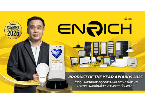 ผลิตภัณฑ์ส่องสว่าง ENRICH สร้างชื่อเสียงในวงการอีกครั้ง ด้วยการคว้า รางวัลผลิตภัณฑ์ส่องสว่างยอดเยี่ยมแห่งปี (Lighting Product) ในงาน “BUSINESS+ PRODUCT OF THE YEAR AWARDS 2025”
