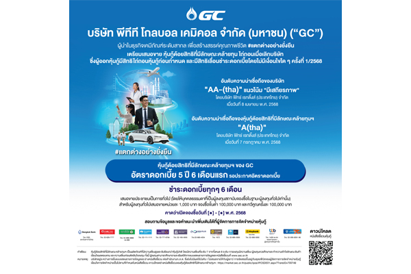 GC เตรียมออกหุ้นกู้ด้อยสิทธิที่มีลักษณะคล้ายทุนฯ สกุลเงินบาท ชุดใหม่ รับกระแสเชิงบวกจากนักลงทุน หนุนแผนบริหารเงินทุนระยะยาว รองรับการเติบโตธุรกิจมูลค่าสูง–คาร์บอนต่ำ