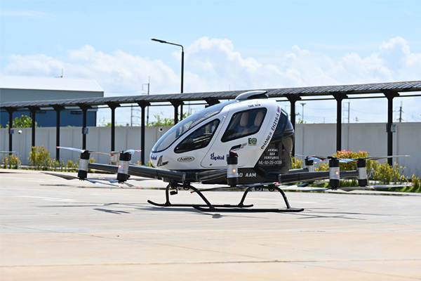 Mr. Conor Chia-hung Yang, Chief Financial Officer ของEHang Intelligent Equipment กล่าวว่า โดรนโดยสารรุ่น EH216-S สามารถบรรทุกผู้โดยสาร ในลักษณะบินขึ้นลงแนวดิ่ง ใช้พลังงานไฟฟ้า 100% เป็นมิตรกับสิ่งแวดล้อม