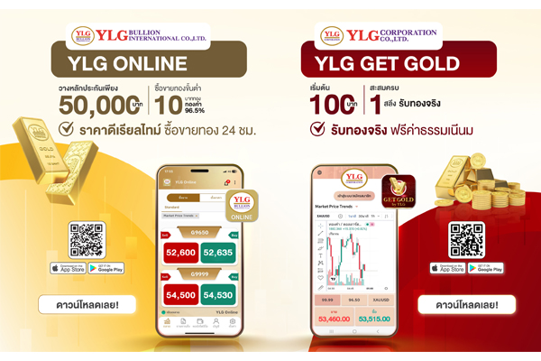 - พร้อมแนะนำช่องทางเริ่มต้นลงทุนทองคำได้ง่ายๆผ่านแอปพลิเคชัน YLG Get Gold ที่วายแอลจีเปิดให้บริการสำหรับนักลงทุนที่ต้องการลงทุนในทองคำโดยใช้เงินลงทุนเพียง 100 บาท ได้รับการตอบรับอย่างดี เนื่องจากตอบโจทย์การลงทุนของคนรุ่นใหม่ที่สามารถซื้อ-ขายทองคำ Gold Spot แบบเรียลไทม์ 24 ชั่วโมง