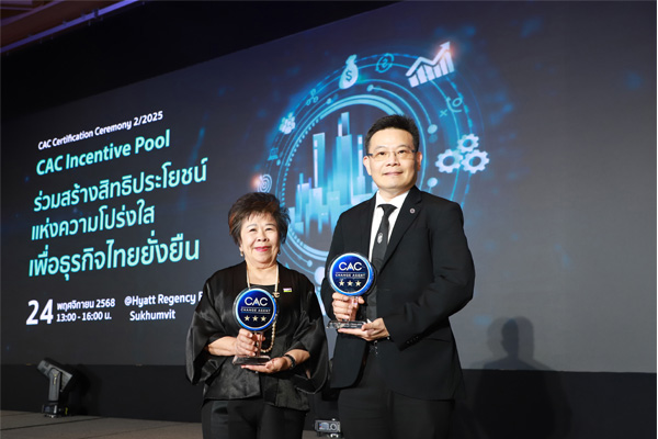 เข้ารับรางวัล “CAC Change Agent Award” ประจำปี 2025 จากแนวร่วมต่อต้านคอร์รัปชันของภาคเอกชนไทย (CAC) ภายในงาน CAC Certification Ceremony ครั้งที่ 2/2025