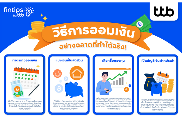 ทีทีบี ฟินทิป เผย 4 เทคนิคการออมเงินอย่างมีระบบ เพื่อสร้างเงินสำรองและความมั่นคงทางการเงินในระยะยาว