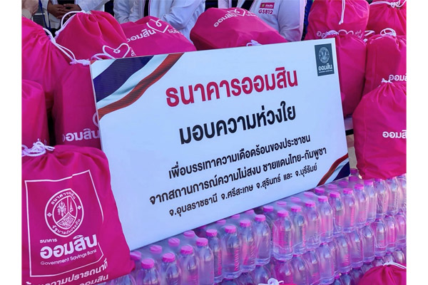 ธนาคารออมสินขอแสดงความห่วงใยและส่งกำลังใจไปยังทหารและตำรวจตระเวนชายแดนที่ยังคงปฏิบัติหน้าที่อย่างเข้มแข็งอยู่ในพื้นที่ ตลอดจนครอบครัวของทหารกล้าผู้เสียสละชีวิตปกป้องอธิปไตยของประเทศ และพี่น้องประชาชนที่ได้รับผลกระทบ โดยมุ่งหวังว่าสถานการณ์จะคลี่คลายและกลับสู่สภาวะปกติในเร็ววัน