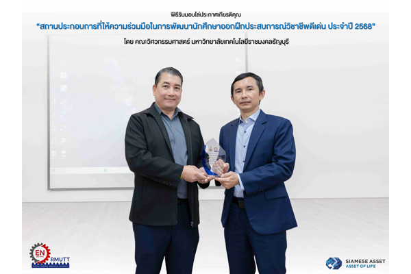 SA รับโล่ประกาศเกียรติคุณ “สถานประกอบการดีเด่น” จาก มทร.ธัญบุรี