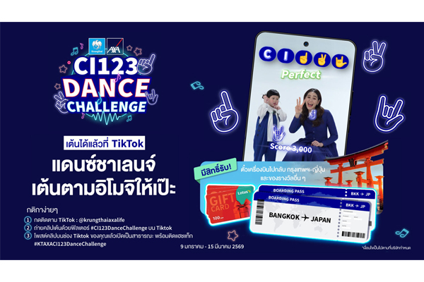 บมจ.กรุงไทย-แอกซ่า ประกันชีวิต ขอเชิญชวนทุกท่านร่วมแดนซ์ชาเลนจ์ กับน้องเกล และคุณชมพู่ อารยา ในกิจกรรม “CI 123 Dance Challenge” บนแพลตฟอร์ม TikTok