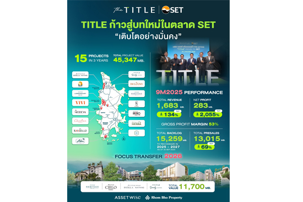 การที่ตลาดหลักทรัพย์แห่งประเทศไทยอนุมัติให้ TITLE ย้ายเข้าซื้อขายในตลาดหลักทรัพย์แห่งประเทศไทย (SET) ถือเป็นก้าวสำคัญของของบริษัท สะท้อนถึงผลการดำเนินงานที่เติบโตอย่างแข็งแกร่งตามแผน และความพร้อมขององค์กรทั้งในด้านขนาดธุรกิจ การบริหารจัดการ และการกำกับดูแลกิจการ