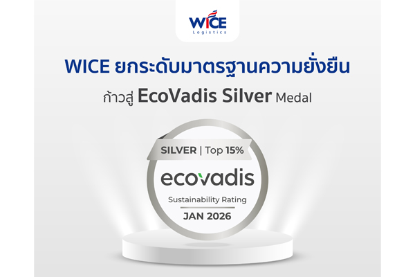 บมจ. ไวส์ โลจิสติกส์ หรือ WICE ยกระดับความยั่งยืน ได้รับการประเมินระดับ Silver จาก EcoVadis องค์กรประเมินความยั่งยืนทางธุรกิจระดับสากล ตอกย้ำศักยภาพผู้นำอุตสาหกรรมโลจิสติกส์ระดับภูมิภาค