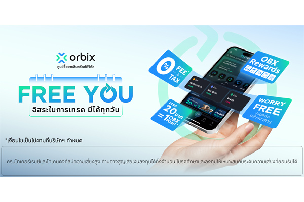 บริษัท ออร์บิกซ์ เทรด จำกัด (orbix) ผู้นำแพลตฟอร์มศูนย์ซื้อขายสินทรัพย์ดิจิทัลของไทย ภายใต้ ออร์บิกซ์ กรุ๊ป ประกาศเดินเกมรุกในปี พ.ศ. 2569 เปิดตัวแคมเปญใหม่ “Free You อิสระในการเทรดมีได้ทุกวัน” มุ่งสร้างประสบการณ์การลงทุนที่ใช้งานง่าย ยืดหยุ่น และมีข้อมูลช่วยตัดสินใจอย่างมั่นใจ รองรับไลฟ์สไตล์นักลงทุนสินทรัพย์ดิจิทัลในระยะยาว