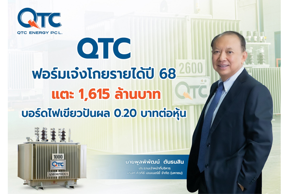 บมจ.คิวทีซี เอนเนอร์ยี่ (QTC) ประกาศงบปี 2568 รายได้ 1,615 ล้านบาท รับดีมานด์การใช้พลังงานสะอาดพุ่ง หนุน Backlog ณ สิ้นเดือนมกราคม 69 แตะ 1,000 ล้านบาท