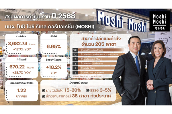 นายสง่า บุญสงเคราะห์ ประธานเจ้าหน้าที่บริหาร MOSHI กล่าวเพิ่มเติมว่า สำหรับทิศทางธุรกิจปี 2569 บริษัทฯ ตั้งเป้าการเติบโตของรายได้ที่ 15-20% และรักษาอัตราการเติบโตของยอดขายจากสาขาเดิม (SSSG) เฉลี่ยที่ 3-5%