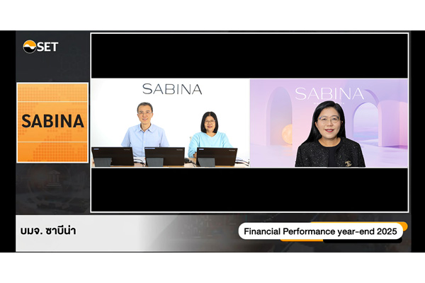 SABINA ให้ข้อมูล Opp Day หวังแรงส่งหลังตัวเลขไตรมาส 4/2568 สัญญาณดีขึ้น พร้อมเดินหน้าปันผล 100% ของกำไรสุทธิ ในอัตราหุ้นละ 1.18 บาท