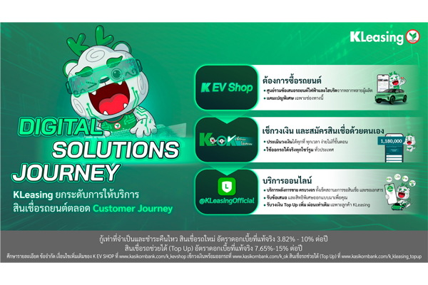 อีกหนึ่งการตอบโจทย์ลูกค้าคือ การยกระดับ KLeasing LINE Official Account ให้เป็นช่องทางหลักในการขายและให้บริการ โดยรองรับทั้งลูกค้ารถใหม่ รถมือสอง และผู้ที่ต้องการวงเงินรีไฟแนนซ์ Top Up พร้อมให้บริการได้อย่างรวดเร็ว ฟีเจอร์ใหม่ที่จะทยอยเปิดในปีนี้ ได้แก่