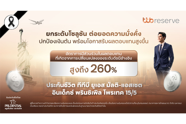 ทีทีบี จับมือ พรูเด็นเชียล ประเทศไทย ยกระดับโซลูชันต่อยอดความมั่งคั่ง คุ้มครองเงินต้น พร้อมโอกาสรับผลตอบแทนสูงขึ้นกับ ประกันชีวิต “ทีทีบี ยูเอส มัลติ-แอสเซต อินเด็กซ์  พรินซิเพิล โพรเทค 15/5”