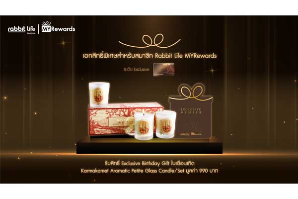 โดยสมาชิก Rabbit Life MYRewards ระดับ Exclusive จะได้รับ ชุดเทียนหอม Aromatic Petite Glass Candles จาก Karmakamet มูลค่า 990 บาท เพื่อร่วมเฉลิมฉลองในวันสำคัญ ตั้งแต่วันนี้ – 28 กุมภาพันธ์ 2570