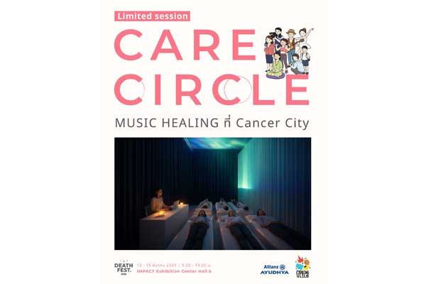 - workshop “The Care Circle” สำหรับผู้ดูแล ซึ่งใช้ดนตรีเป็นเครื่องมือในการเยียวยาจิตใจ (Music Healing) สร้างพื้นที่แห่งการแบ่งปัน การสนับสนุนทางอารมณ์ และการดูแลกันในชุมชนของผู้ที่ต้องดูแลผู้ป่วยมะเร็ง ลงทะเบียนเข้าร่วม THE CARE CIRCLE ได้ที่ https://forms.gle/N7NUyase7tCDjikz5 (ไม่มีค่าใช้จ่าย)