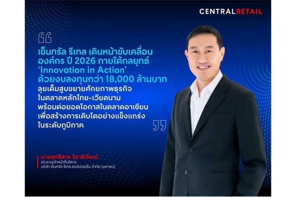 เซ็นทรัล รีเทล ชูกลยุทธ์ ‘Innovation in Action’ ขับเคลื่อนปี 2569 ทุ่มงบกว่า 1.8 หมื่นล้าน พร้อมลุยไทย-เวียดนามเต็มสูบ