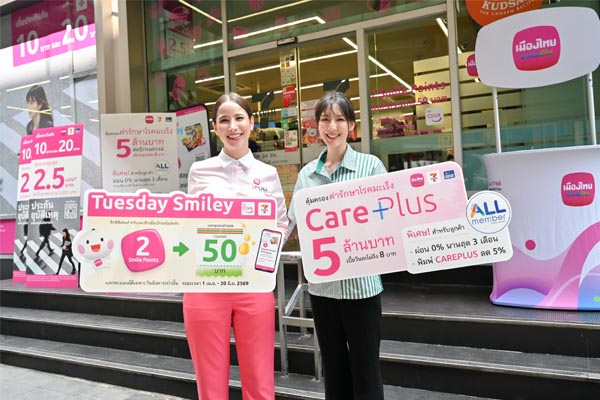 ด้านสมาชิกเมืองไทยสไมล์คลับ รับสิทธิพิเศษ Tuesday Smiley (M-Coupon) แลกคะแนนเฉพาะวันอังคารเท่านั้น ใช้เพียง 2 Smile Points แลกรับคูปองแทนเงินสดมูลค่า 50 บาท (2 สิทธิ์/1 ท่าน/ สัปดาห์) จำนวน 3,000 สิทธิ์