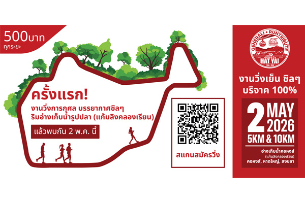 สำหรับกิจกรรม “GENERALI RUNTRIBUTE: REBUILD HAT YAI” จัดขึ้นในวันที่ 2 พฤษภาคม 2569 ตั้งแต่เวลา 14.00 – 20.00 น. ณ อ่างเก็บน้ำคอหงส์ (แก้มลิงคลองเรียน) เทศบาลเมืองคอหงส์ อำเภอหาดใหญ่ จังหวัดสงขลา