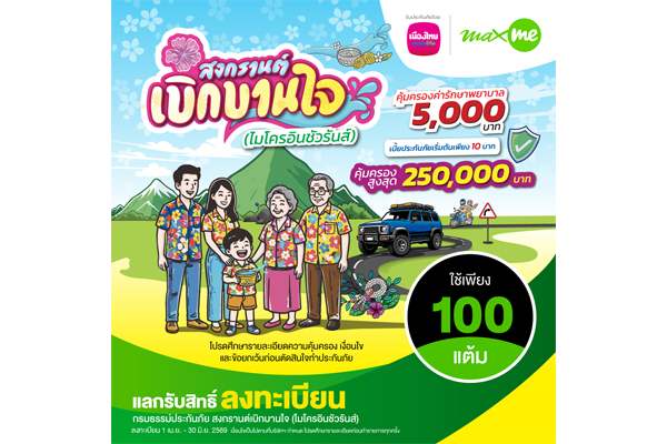 เมืองไทยประกันชีวิต จับมือ แมกซ์ โซลูชัน เซอร์วิส ส่ง “กรมธรรม์ประกันภัยสงกรานต์เบิกบานใจ 10 บาท (ไมโครอินชัวรันส์)” เพิ่มความอุ่นใจแก่สมาชิก Max Card ช่วงเทศกาลสงกรานต์
