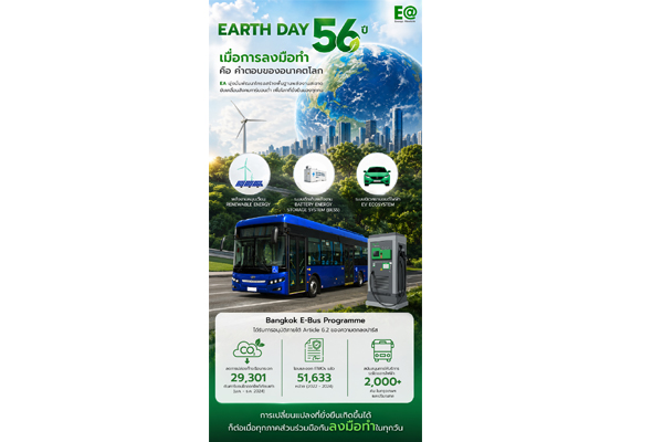 เนื่องในวันคุ้มครองโลกปีนี้ EA ยืนยันเจตนารมณ์ในการร่วมเป็นส่วนหนึ่งของการขับเคลื่อนสังคมคาร์บอนต่ำผ่านการพัฒนาโครงสร้างพื้นฐานและเทคโนโลยีพลังงานสะอาดที่ตอบโจทย์ทั้งเศรษฐกิจ สิ่งแวดล้อม และคุณภาพชีวิตของประชาชน