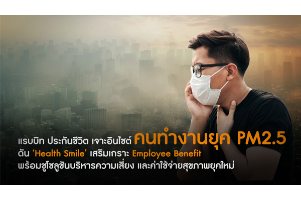 ท่ามกลางปัจจัยแวดล้อมที่ท้าทาย โดยเฉพาะสถานการณ์ PM2.5 พร้อมนำเสนอแผนประกันสุขภาพเหมาจ่าย “Health Smile” ภายใต้คอนเซปต์ “ป่วยแค่ไหนก็ยิ้มได้” เพื่อช่วยให้มนุษย์เงินเดือนบริหารค่าใช้จ่ายด้านสุขภาพได้อย่างมั่นใจ